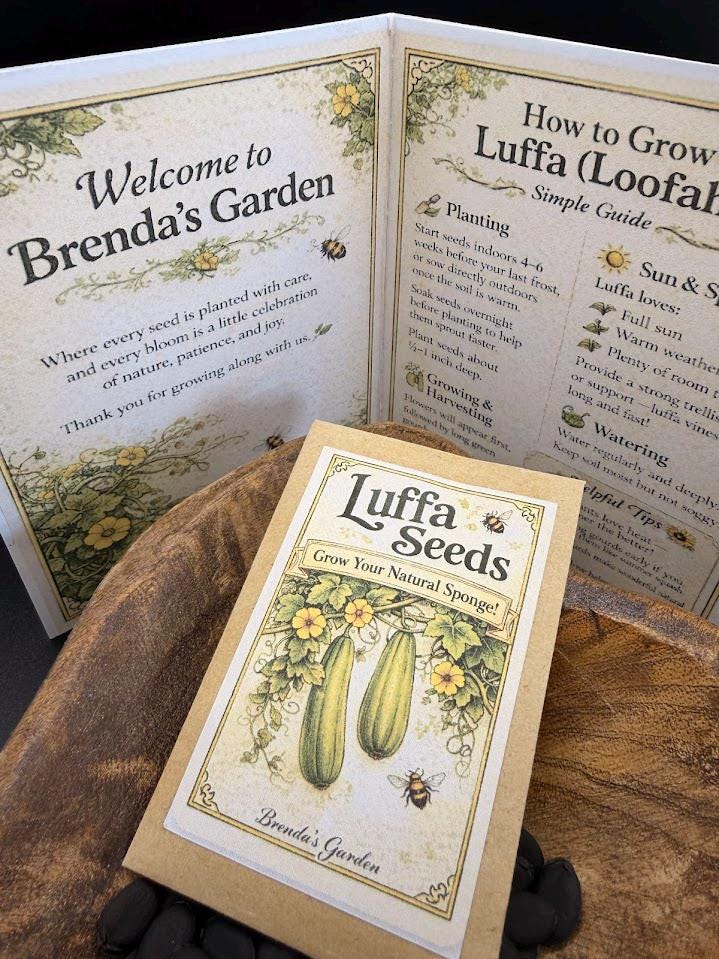 ✨ Fresh luffa seeds and my custom Luffa Growing Instructions Card