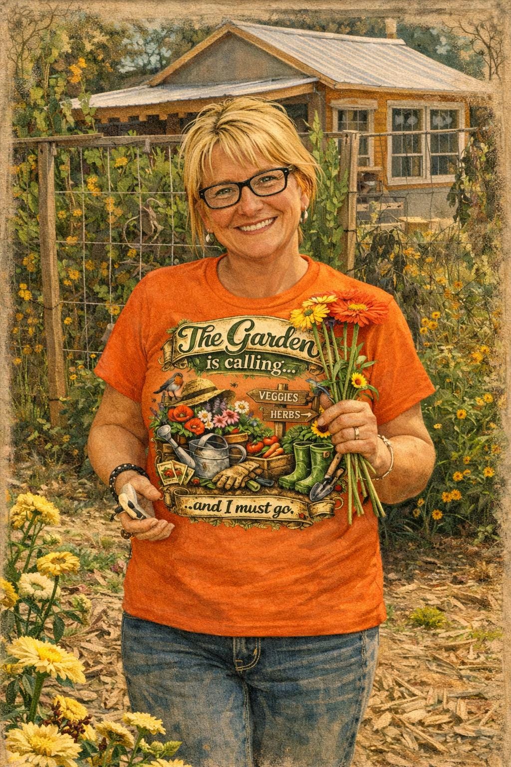 Custom art created in Brenda's garden studio printed on: